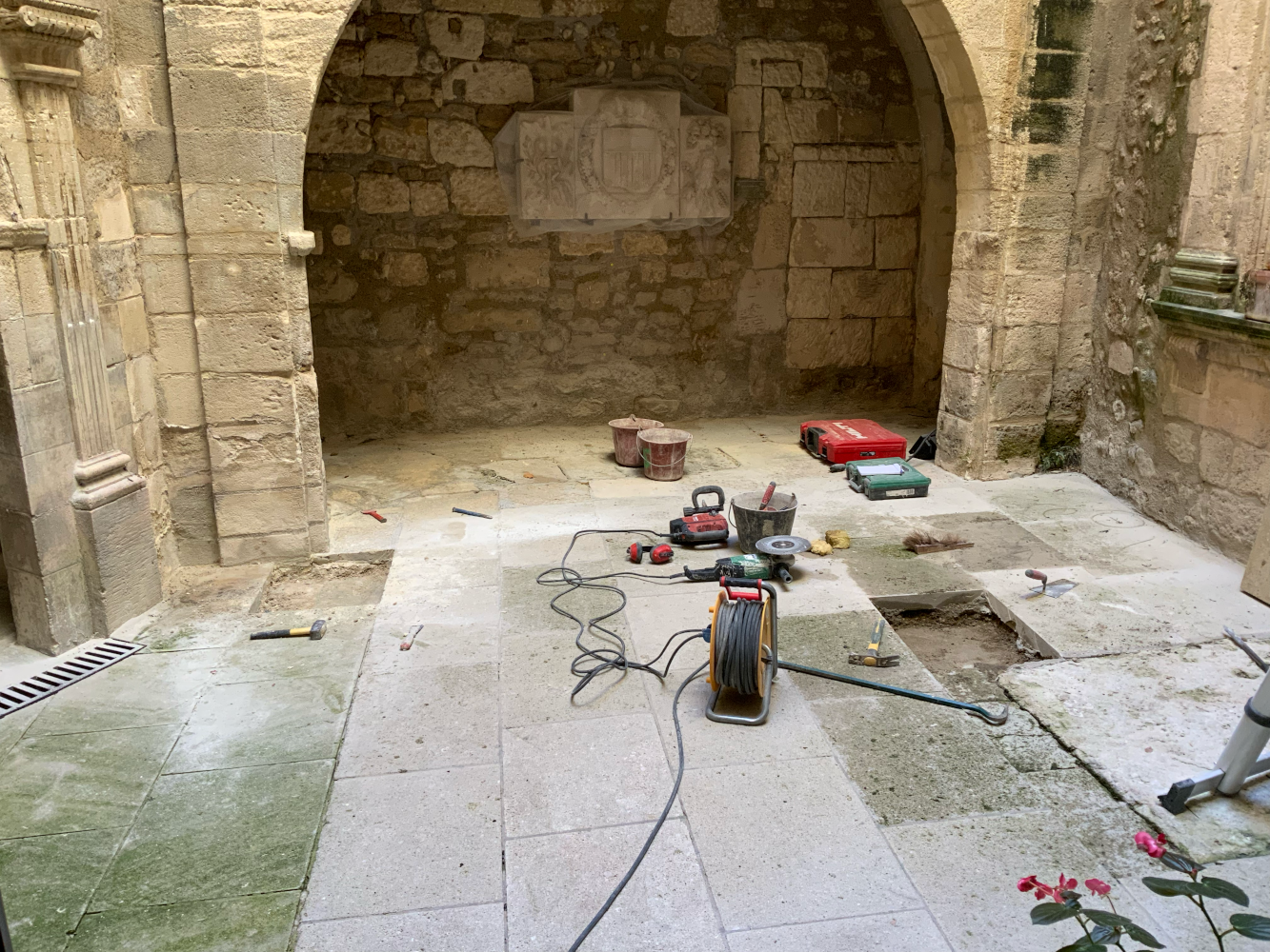 Expertise complémentaire à l’étude préalable du Maitre d’Ouvrage, axée sur la compréhension et la recherche des sources d’humidité, principale cause des désordres : sondages dans la cour, analyses des sels solubles dans la pierre, suivi d’hygrométrie, relevé des teneurs en eau dans les maçonneries, accompagnement aux sondages sur dallage de la cour réalisés par des Maçons du Patrimoine – Rédaction d’un protocole d’intervention