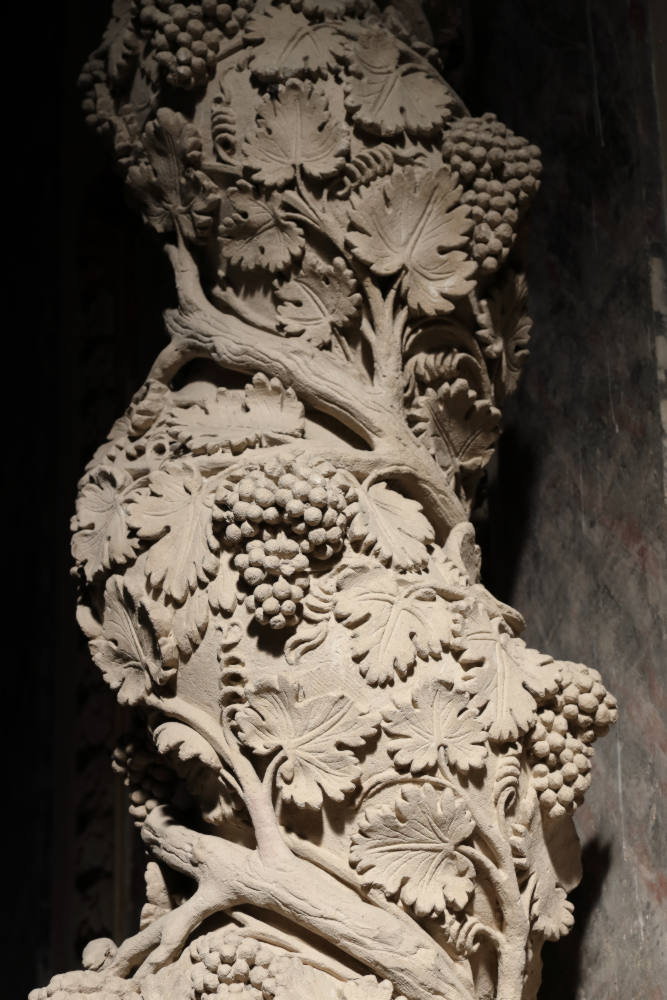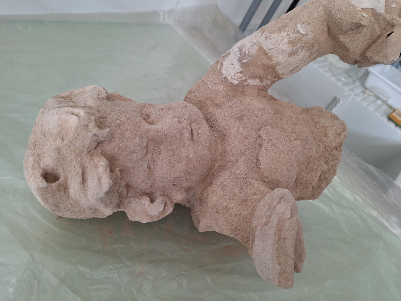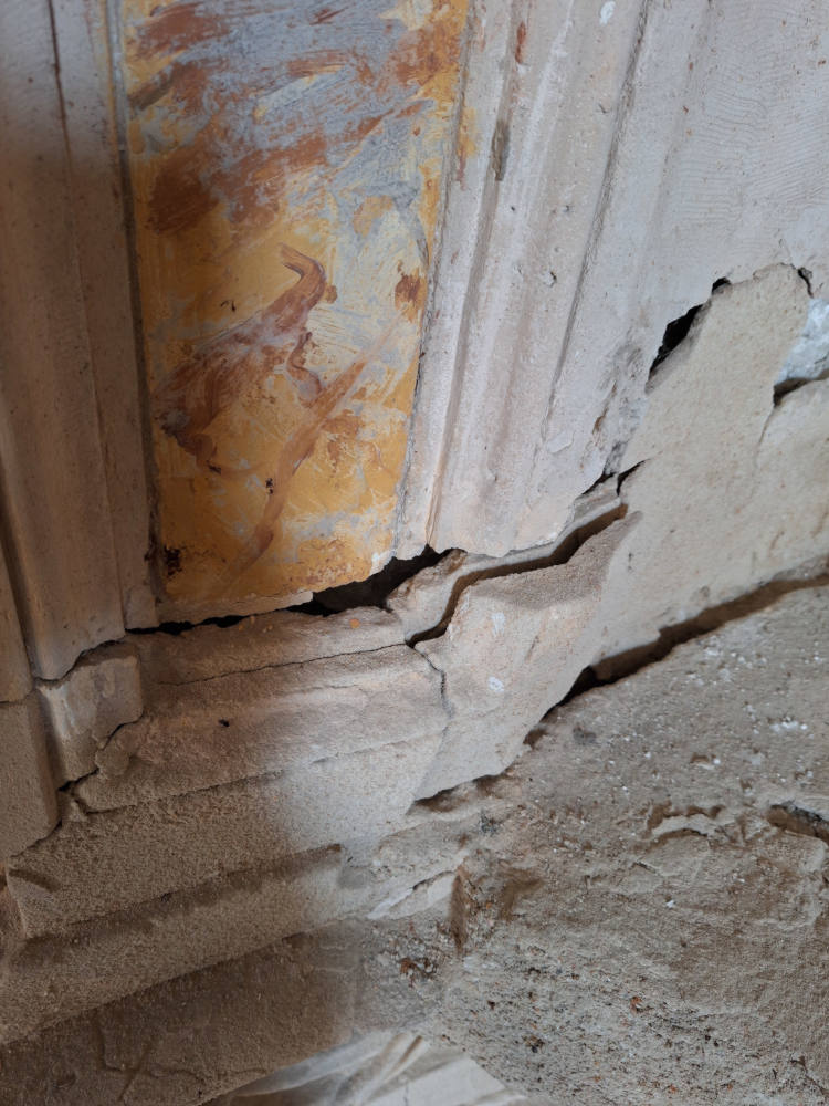 Etude des désordres du matériau mis en œuvre, un stuc-pierre (désagrégation sévère, perte de cohésion) affectant les statues et les parties basses du retable : détermination de la technique la plus appropriée de consolidation en présence de sels solubles, tests de faisabilité (consolidation) : essais sous vérification d’efficacité du produit par le CICRP.