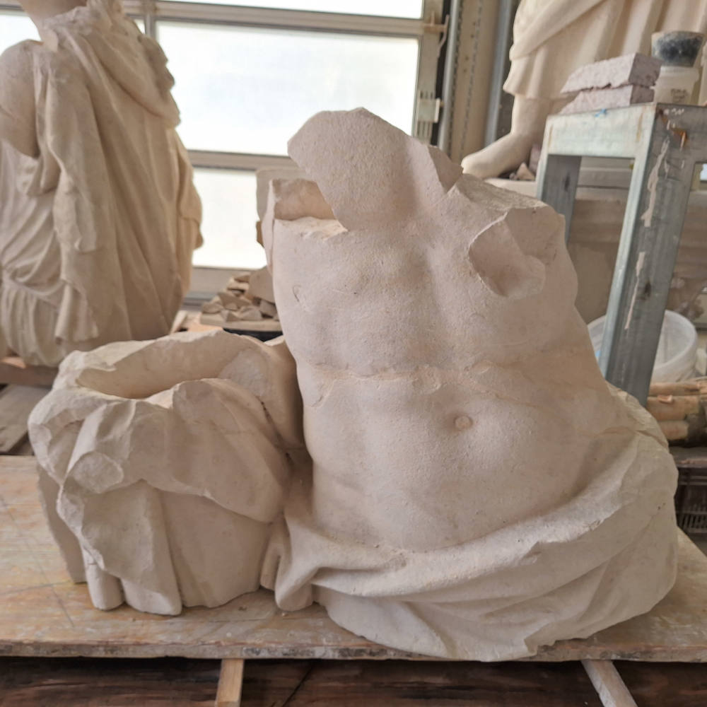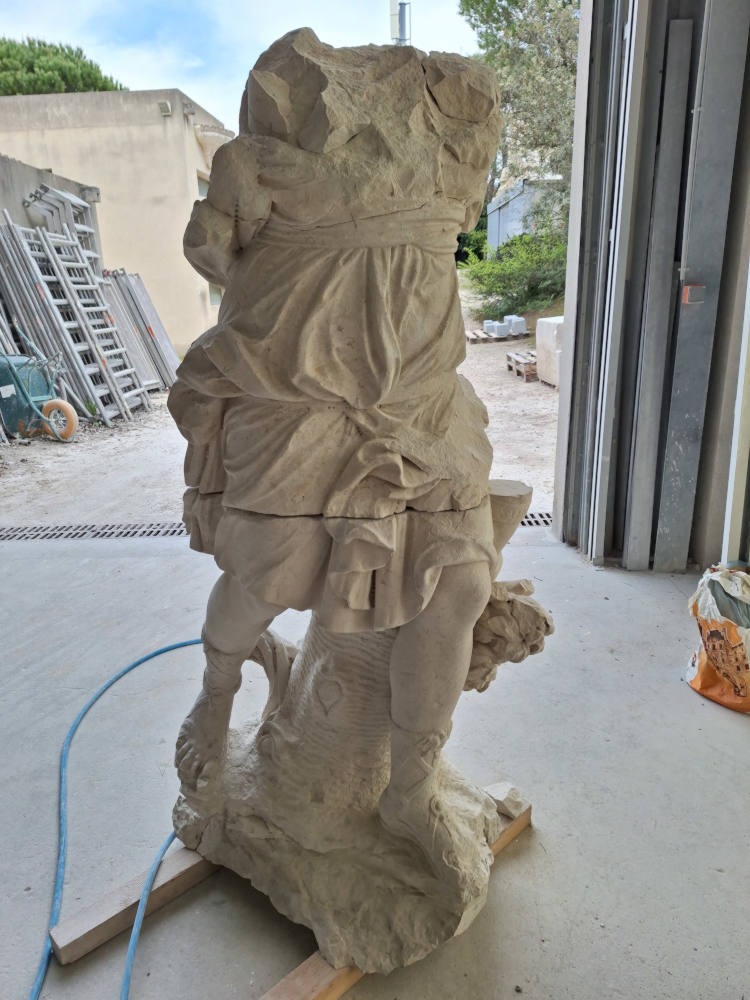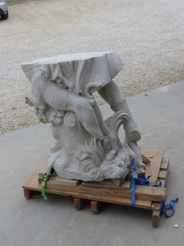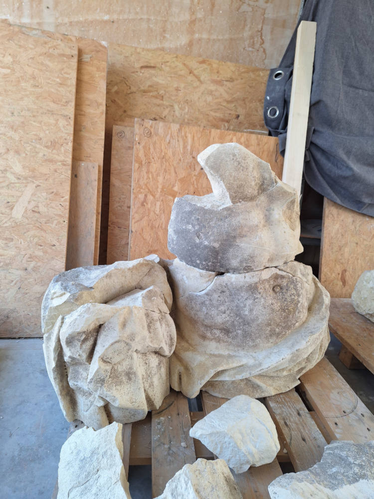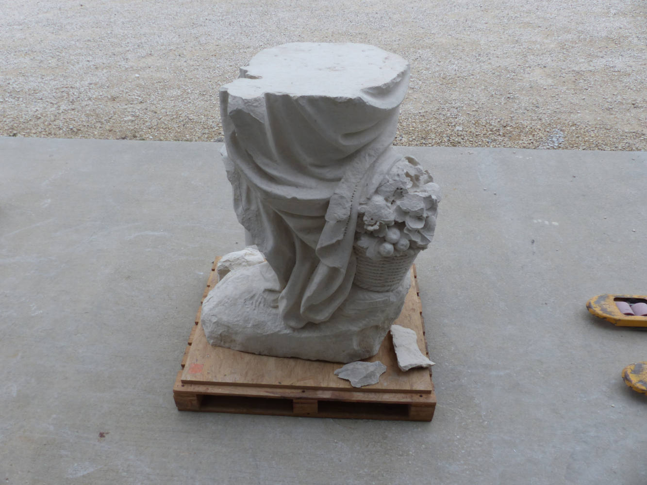 - Phase 3 : étude de faisabilité d’un remontage – propositions de restauration/restitution pour présentation dans le parc – Marché Subséquent : confortements structurels, collages, assemblages en vue de la reconstitution des statues.