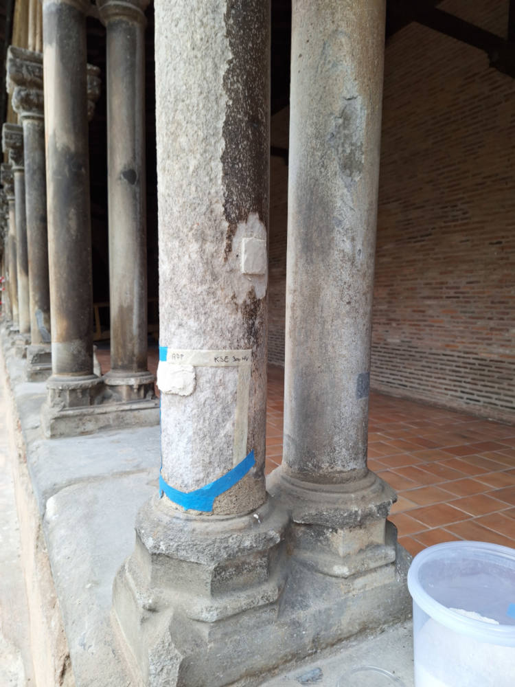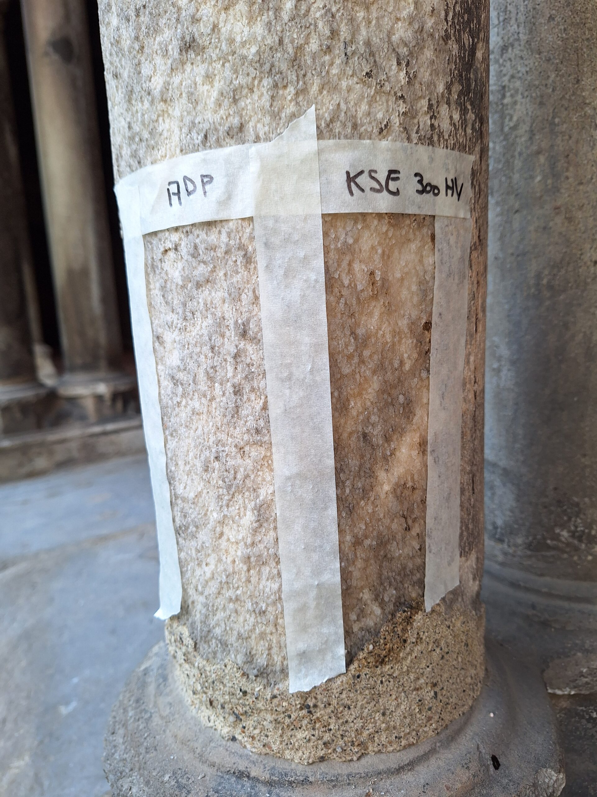 Diagnostic des parties en marbre et pierre calcaire – Premiers essais de faisabilité (nettoyage Laser et Micro-gommage), consolidation, dessalement – Rédaction des pièces techniques des phases ADP et PRO avec complément d’analyses, de tests de consolidation du marbre, de dessalement par compresse avec suivi par conductimétrie – Participation à la phase DET